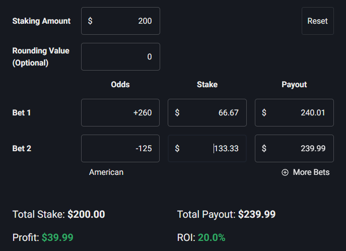 Odds: +260 / -125
