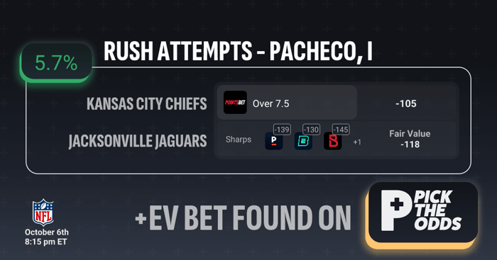 Bet 1: Pacheco Over 7.5 Rushing Attempts