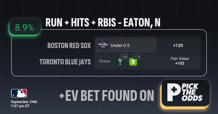 Getting this bet at +120 translates to a nearly 9.0% EV on this bet.