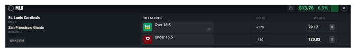 Bet 4: Cardinals / Giants Over and Under 16.5 Total Hits
