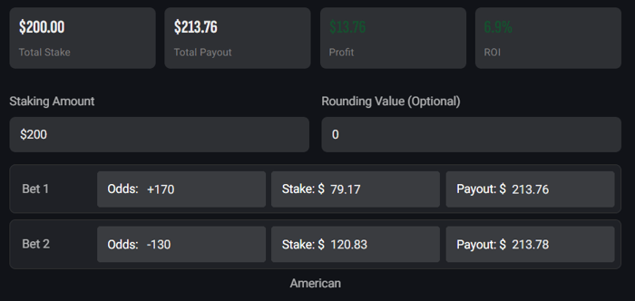 Let's say you take the Over 16.5 Total Hits on Bet365 at +170 odds for $79.17. If this side hits you win $213.