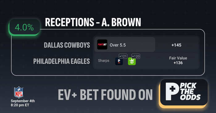 Starting off the season with the Super Bowl Champion AJ Brown to go over 5.5 Receptions here. Dallas ranked 17th in pass defense last year and with the loss of Micah Parsons I can't imagine the defense being much better in general.