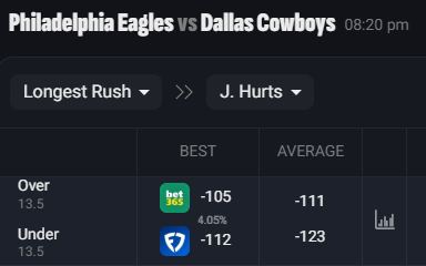 Play #3 Jalen Hurts Over 13.5 Longest Rush