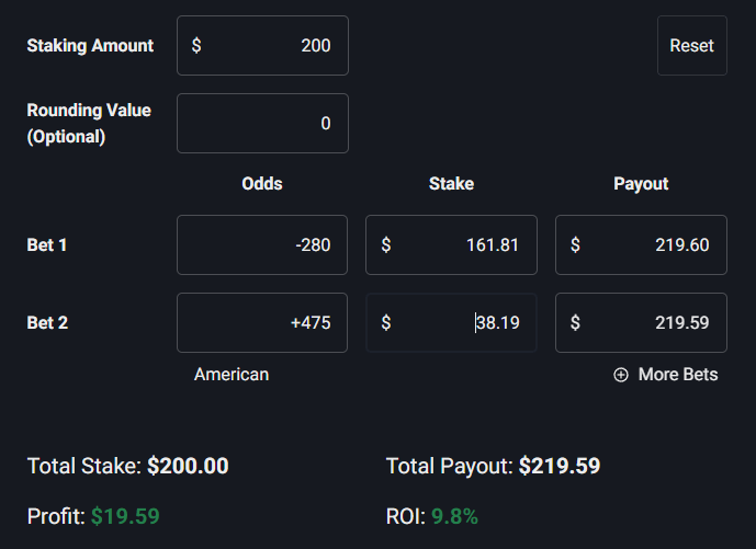The odds are on our side here at +145 as well. Two other sharp books Pinnacle and DraftKings have his line at +121 and +120 respectfully. Meaning the market thinks this line should be around +120ish not +145. Nearly 25 cents of value here.