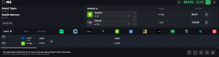 Bet 4: Seattle -1.5 / Detroit +1.5 Spread 2nd Inning