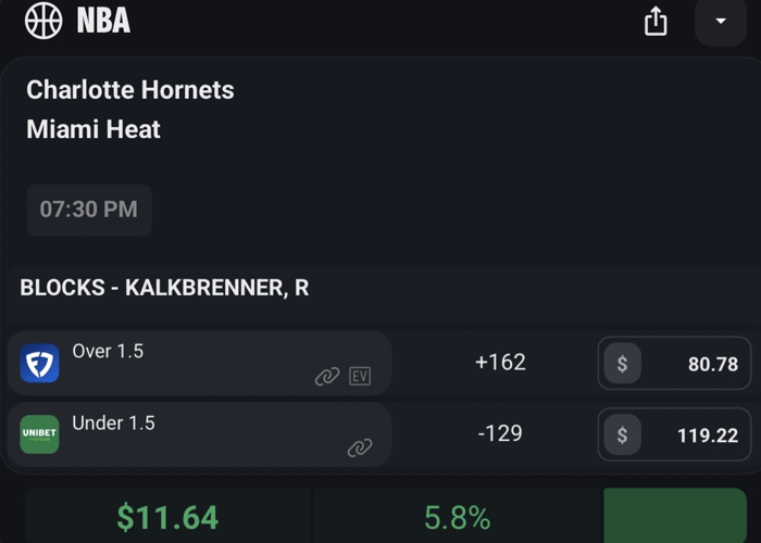 Bet 5: Kalkbrenner Over / Under 1.5 Blocks