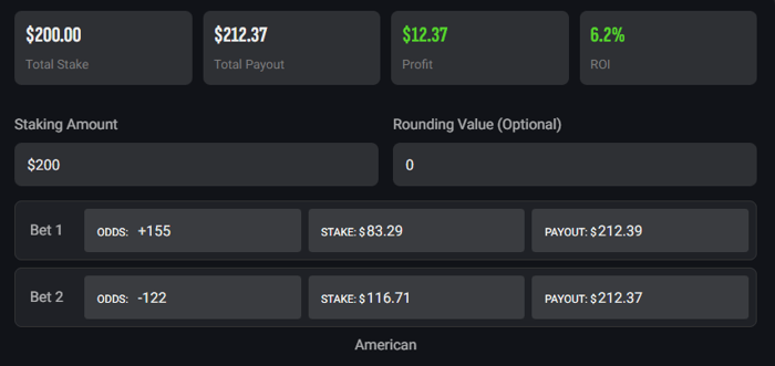 Let's say you take Hachimura Under 4.5 rebounds on NoVig at -122 odds for $116.71 If this side hits you win $212.