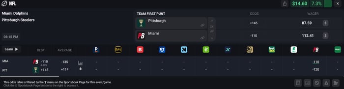 Let's say you take Pittsburgh To Punt First on Caesars at +145 odds for $87.59. If this side hits you win $214.