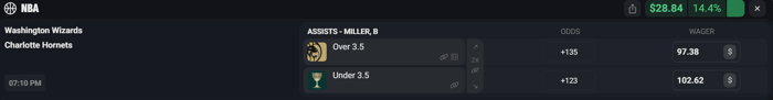 Bet #5 Miller Over 3.5 / Under 3.5 Assists
