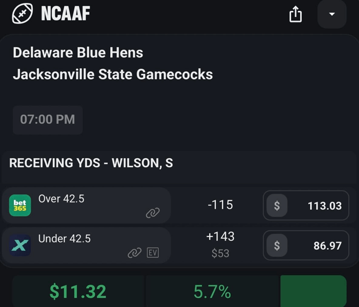 Bet 5: Sean Wilson Over / Under 42.5 Receiving Yards