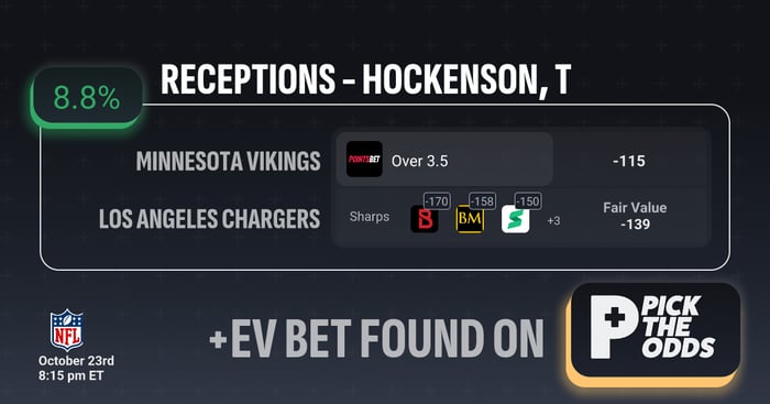 All of these picks were found via Pick The Odds. Pick The Odds is a comprehensive sports betting platform designed for bettors seeking to gain an edge through data-driven tools and real-time analytics. With tools such as the Odds Screen, Positive EV, Arbitrage, and more we have you covered for all yours sports betting needs.